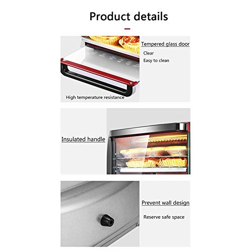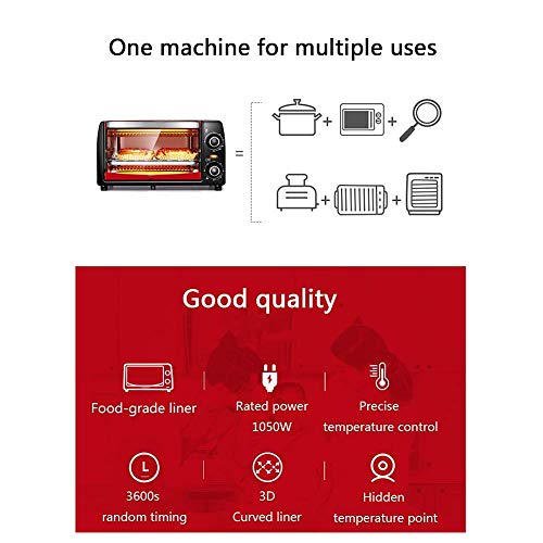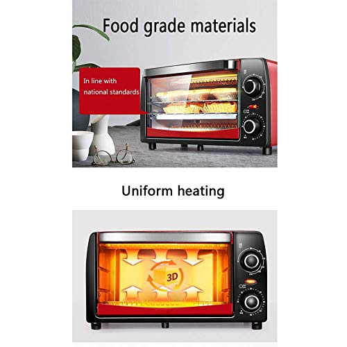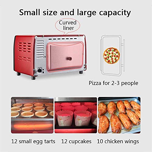 12L elektrische mini-oven rode thuisbakdoos, met 30 ° C temperatuurregeling voor groot gebied, timer en accessoires ook inbegrepen – volledig automatisch bakvoedsel Happy Life