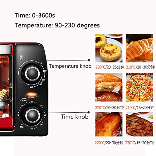 Specificaties: 12L elektrische mini-oven rode thuisbakdoos, met 30 ° C temperatuurregeling voor groot gebied, timer en accessoires ook inbegrepen – volledig automatisch bakvoedsel Happy Life